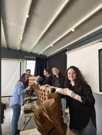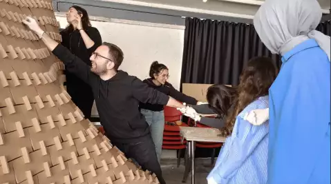 Mimar Sinan Etkinlikleri kapsamında Merkez Müdürlüğümüz ve kurumsal işbirlikleriyle düzenlenen "Algoritmik Tonoz Keşifleri Atölyesi", TMMOB Mimarlar Odası Kayseri Şubesinde gerçekleştirilmiştir. İnana Abdulli ve Kesra Mansuri yürütücülüğünde tamamlanan atölye çalışmaları kapsamında parametrik tasarım ve dijital simülasyon yöntemleriyle 1/1 ölçekli bir enstalasyon üretilmiştir.
