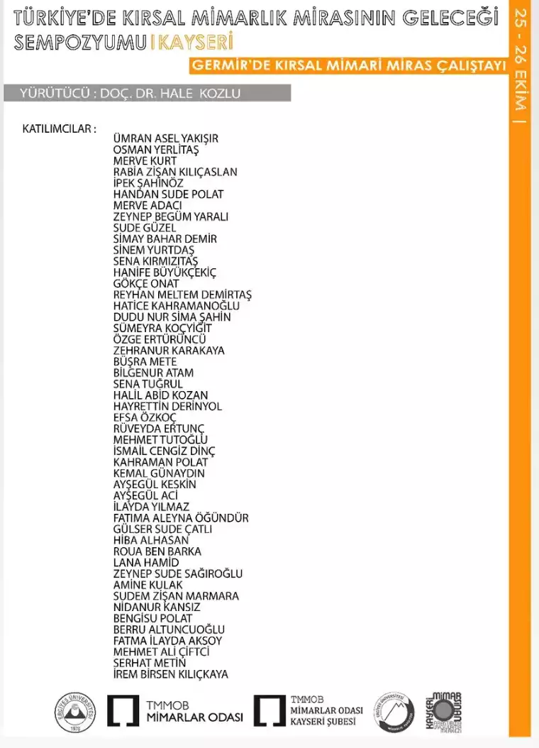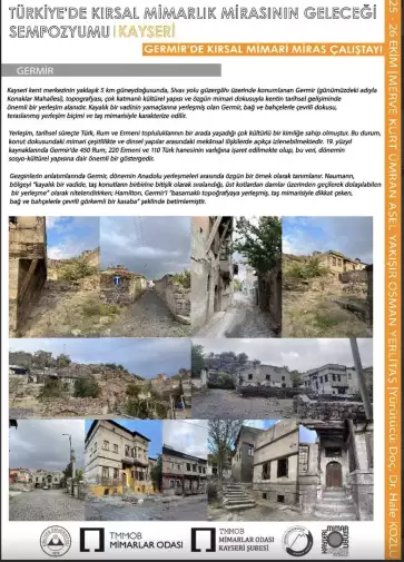 ERÜ Mimar Sinan Merkezi ile ERÜ Mimarlık Fakültesi, TMMOB Mimarlar Odası Genel Merkez ve Kayseri Şubesi işbirliği ile 20-24 Ekim 2025 tarihleri arasında Merkez Müdürümüz Doç. Dr. H. Hale Kozlu yürütücülüğünde düzenlenen ve 50 öğrencinin katıldığı "Germir'de Kırsal Mimarlık Mirası Çalıştayı" sergisi, 25 Ekim 2025 tarihinde İl Halk Kütüphanesinde ve 4 Kasım 2025 tarihinde ERÜ Mimarlık Fakültesinde açıldı.